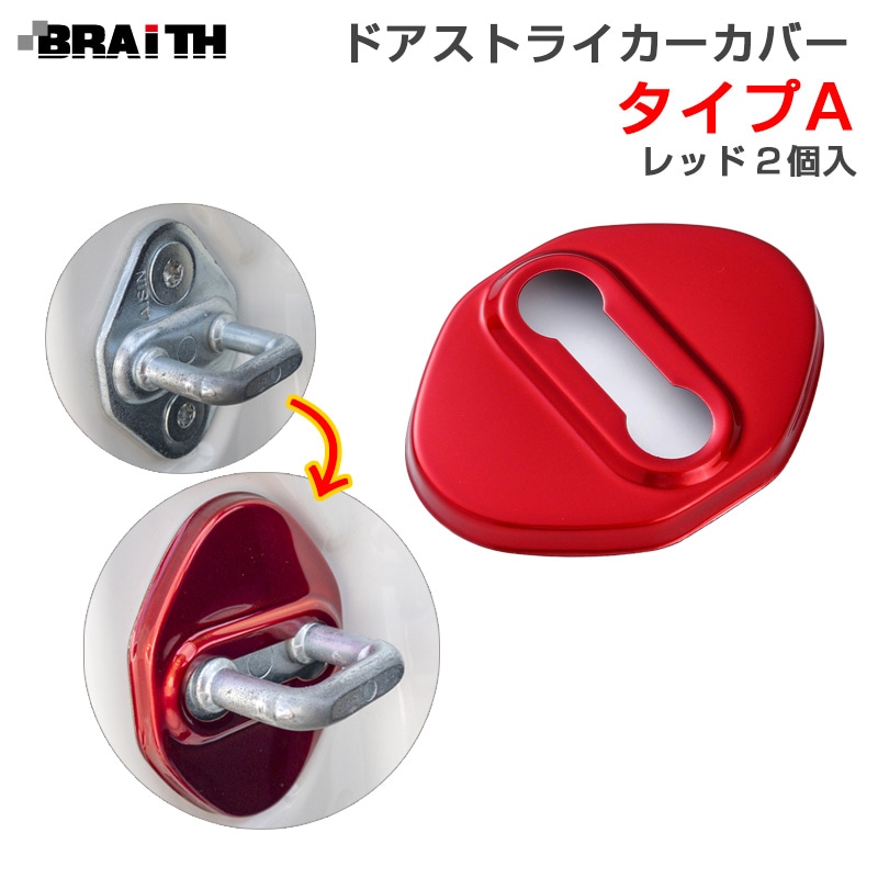BRAiTH ドアストライカーカバー レッド Aタイプ ドア トヨタ・ダイハツ等 2個入 両面テープ取付 アルミ製 BM-631