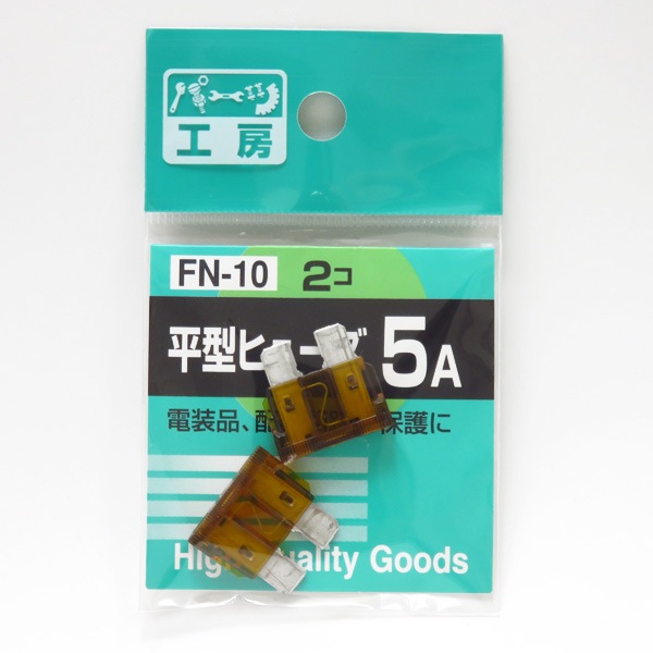 パーツ工房 平型ヒューズ 5A 2個 電装品・配線回路の保護に FN-10