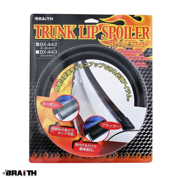 ブレイス トランクリップスポイラー カーボン調 汎用 リーフ リアウィング エアロパーツ 132cm 塩化ビニール 曲面 カット可能 車 BX-442