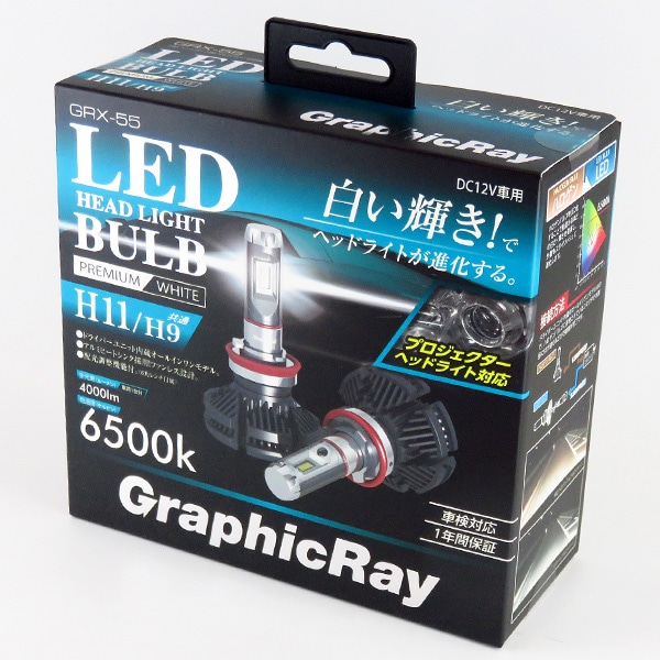 アークス LEDヘッドランプ用バルブ H11/H9 共通 6500K プレミアムホワイト 車検対応 DC12V車対応 オールインワン ファンレス GRX-55