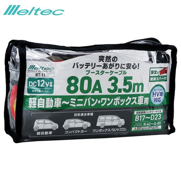 大自工業/メルテック ブースターケーブル 80A 3.0M DC12V ハイブリッド車対応 軽自動車~ミニバン、ワンボックス車 バッテリー BT-21