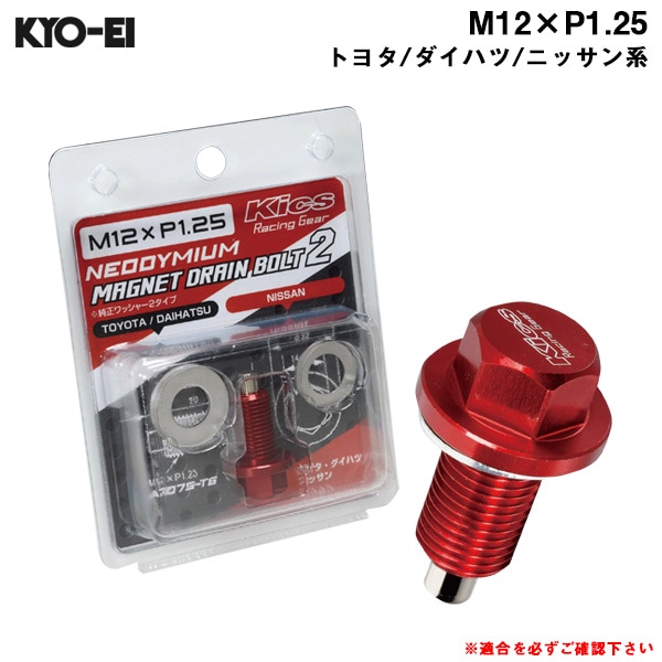 KYO-EI マグネット ドレンボルト2 M12×P1.25 レッド ネオジウム 4950 ガウス トヨタ/ダイハツ/ニッサン系 アルミ軽合金 5mm突出 MAG-21