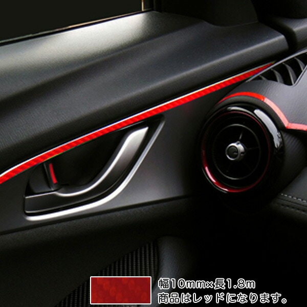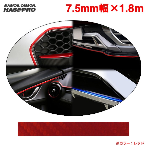 ラインシート カーボン柄 レッド 10mm幅×1.8m 日本製 車 内装 外装 バンパー カーボンライン マジカルアートシート ハセプロ MSLS-1R