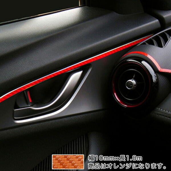 ラインシート カーボン柄 オレンジ 10mm幅×1.8m 日本製 車 内装 外装 バンパー カーボンライン マジカルアートシート ハセプロ MSLS-1OR