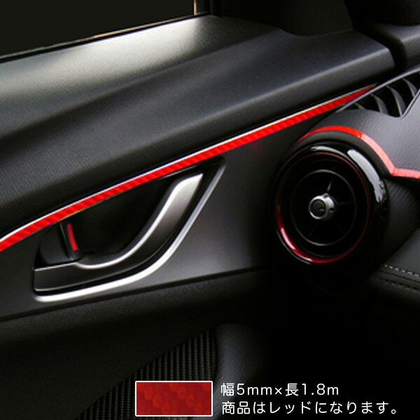 ラインシート カーボン柄 レッド 5mm幅×1.8m 日本製 車 内装 外装 バンパー カーボンライン マジカルアートシート ハセプロ MSLS-2R