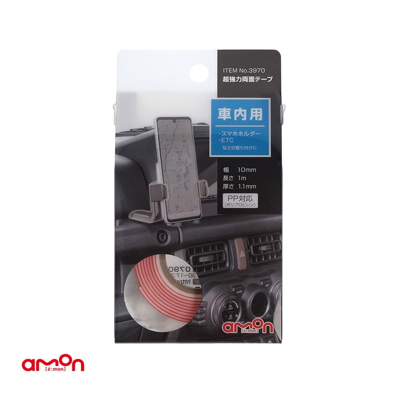 エーモン/amon 超強力両面テープ 車内用 柔らかいダッシュボード用 幅10mm×長さ1m×厚さ1.14mm ETC・スマホホルダーなどの取付に 3904