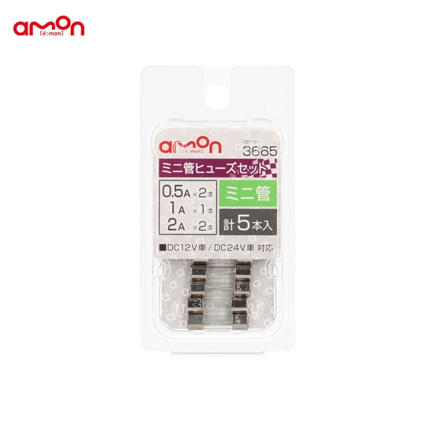 エーモン/amon ミニ管ヒューズセット 0.5/1/2A 交換 約Φ5.2 × 長さ約20mm DIY 3665