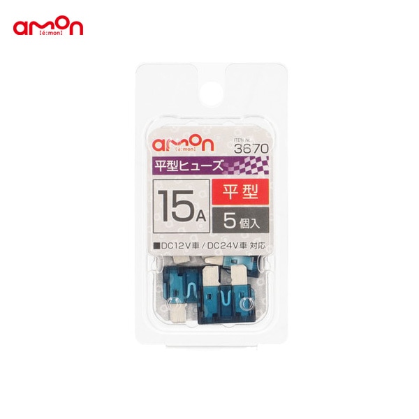 エーモン/amon 平型ヒューズ 15A 5個入 交換 約19×19×5mm DIY 車 3670