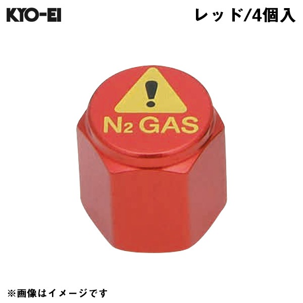KYO-EI 窒素ガス用 バルブキャップ レッド タイヤ空気 N2 GAS 4個入 メンテナンス チッソ 車 N2-VR