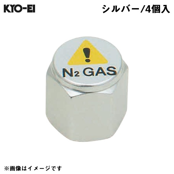 KYO-EI 窒素ガス用 バルブキャップ シルバー タイヤ空気 N2 GAS 4個入 メンテナンス チッソ 車 N2-VS