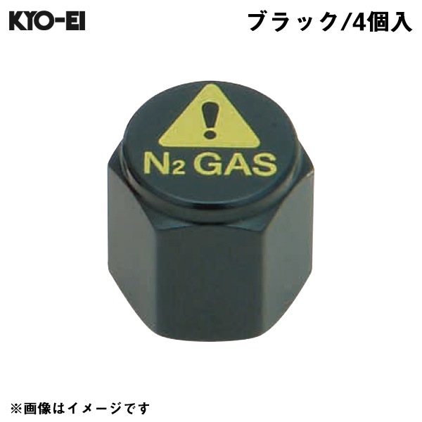 KYO-EI 窒素ガス用 バルブキャップ ブラック タイヤ空気 N2 GAS 4個入 メンテナンス チッソ 車 N2-VBK