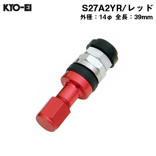 KYO-EI インサイドバルブ 外径14φ 長39mm レッド inside ホイール用 エアバルブ 軽合金アルミ製 1本 S27A2YR