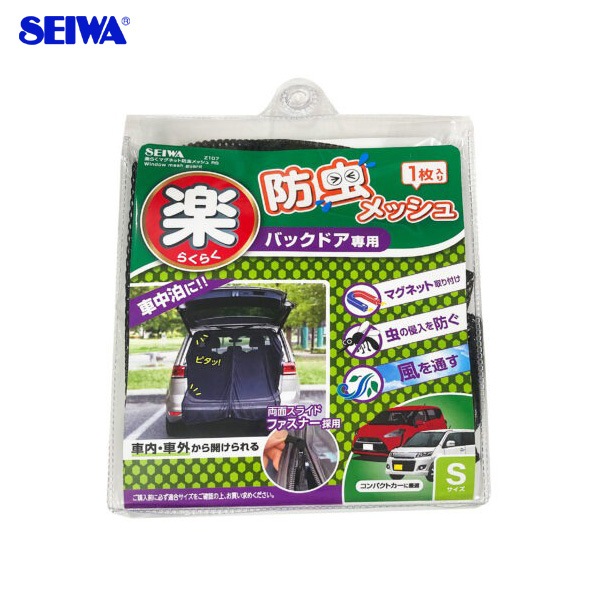 セイワ/SEIWA 楽らくマグネット防虫メッシュRS バックドア用 Sサイズ ブラック マグネット固定 車中泊 両面スライドファスナー付 Z107