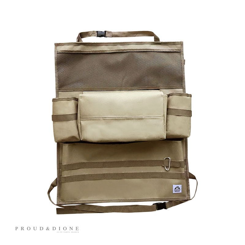 PROUD GEAR プラウドギア シートバックポケット キックガード シート背面汚れ防止 収納 サンドカーキ ヘッドレスト取付 カラビナ PGR-107
