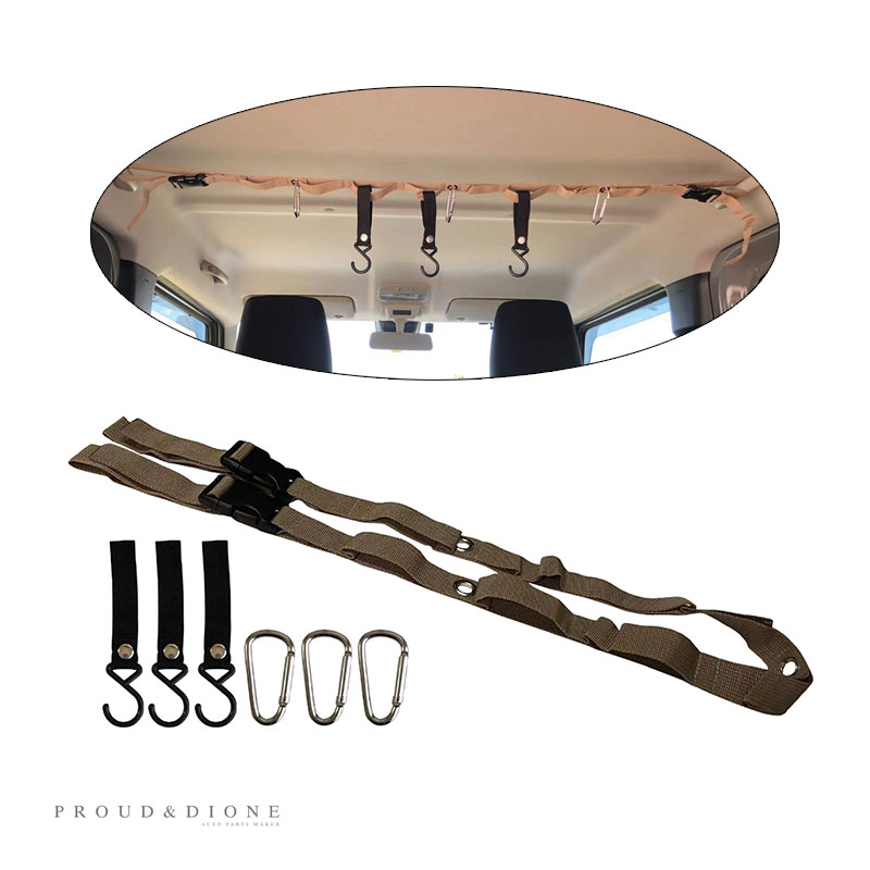 PROUD GEAR プラウドギア ハンギングベルトセット カラビナ フック付 丸穴3ヶ所 車内収納 サンドカーキ アウトドア レジャー PGR-117