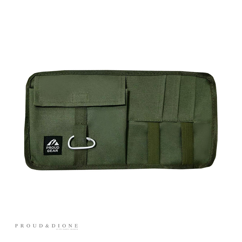 PROUD GEAR プラウドギア マルチポケット 車内収納 バイザー取付 オリーブカーキ カラビナ ベルト付 約16×11×4cm PGR-009