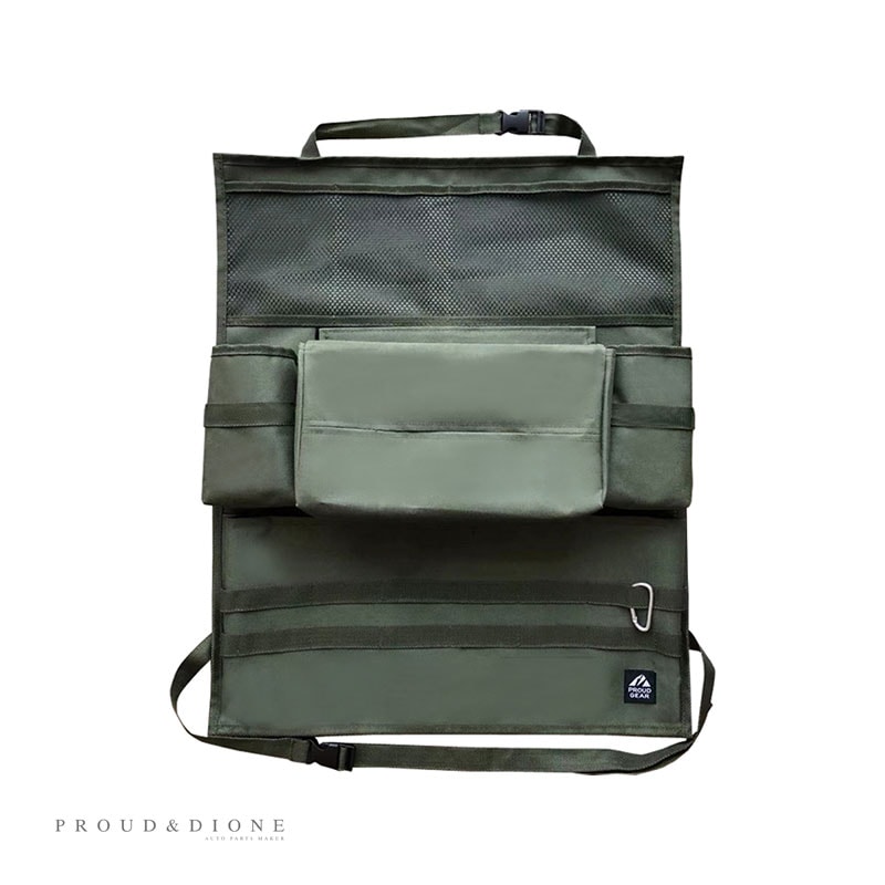 PROUD GEAR プラウドギア シートバックポケット キックガード シート背面汚れ防止 収納 オリーブカーキ カラビナ ベルト付 PGR-007