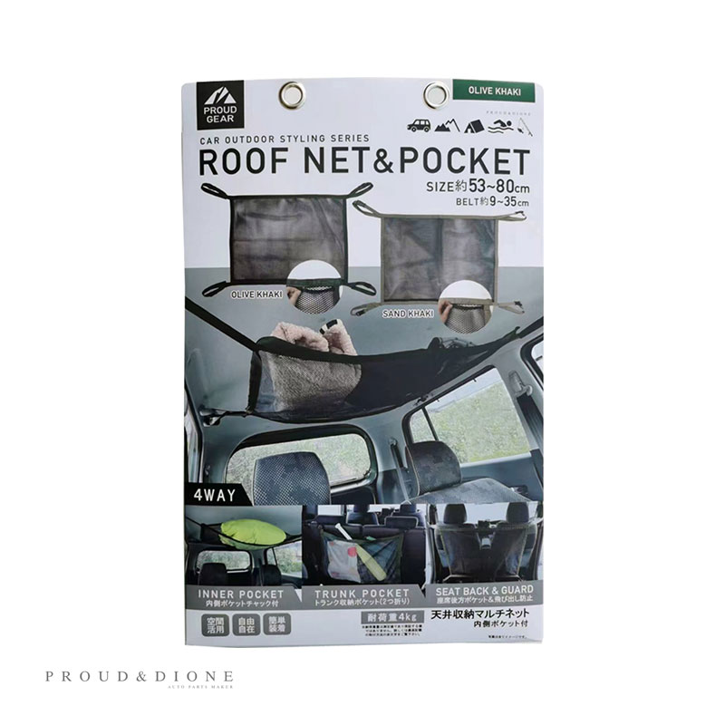 PROUD GEAR プラウドギア 天井収納マルチネット 車内収納 ルーフ オリーブカーキ 内側ポケット付 隙間活用 便利 アウトドア PGR-013