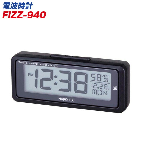 ナポレックス 電波時計 日本全国受信可能 1日4回自動受信 青色LEDバックライト付き Fizz-940/