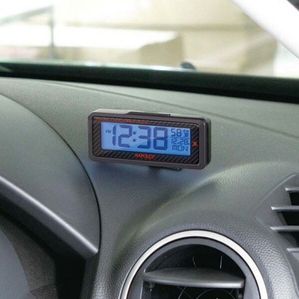 ナポレックス:電波時計 車用ブルー LED アラーム付き/fizz-1013