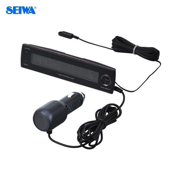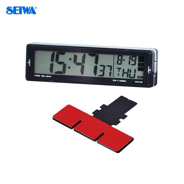 セイワ ライト電波クロック 電波時計 車内 テープ取付 大きな時刻文字 見やすい ブルーバックライト機能 ダッシュボード等 WA79
