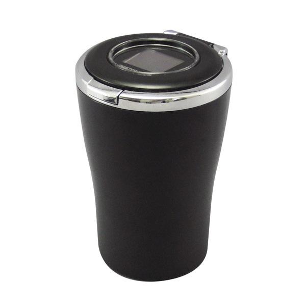 カシムラ ソーラーボトルアッシュ2 カーボン×ブラックメッキ 灰皿 車内 底フタ取り外し ソーラー電池 ホワイトLED AK-210