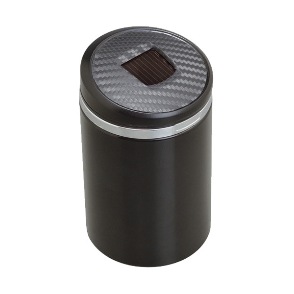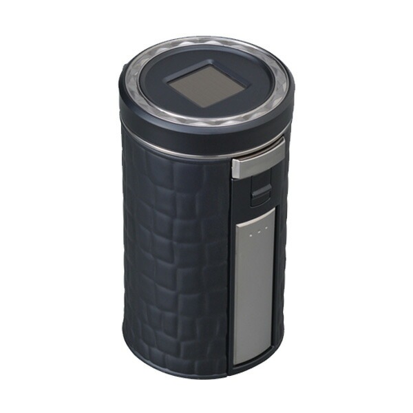 灰皿缶 カーボン調 自然消化穴付き ソーラー充電タイプ 電池交換不要/セイワ:W861