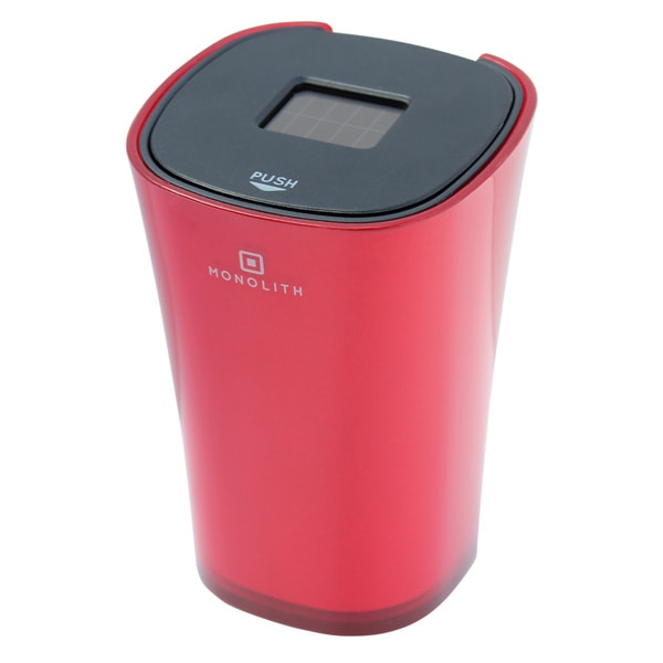 ペルシード:自動車用灰皿 ソーラーLEDライト付き アッシュトレイ シンプルデザイン レッド/DA-1614