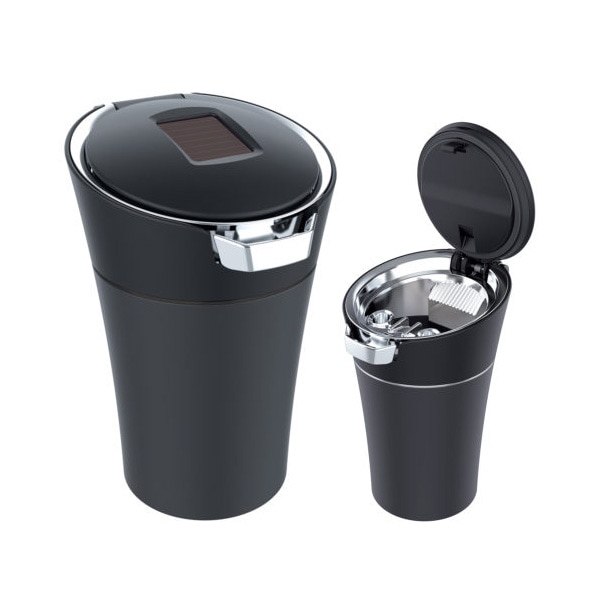 ペルシード ソーラーライト スマートアッシュ ブラック 灰皿 車内 タバコ 自然消火 電池交換不要 LEDライト付 SP-191