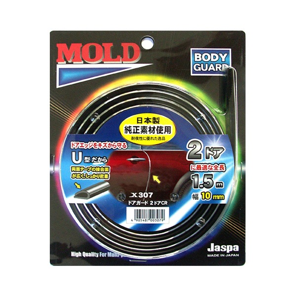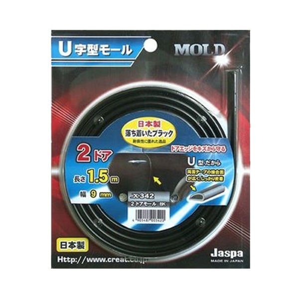 ドアモール ドアガード U字型 2ドア ブラック 1.5m巻 幅9mm 日本製 車 Jaspa/クリエイト X342