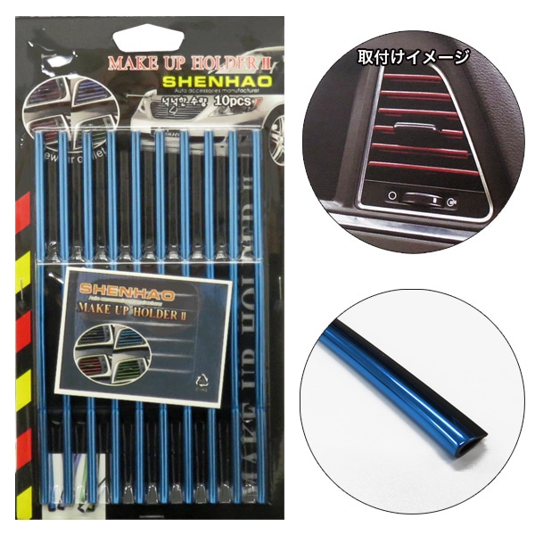ブレイス メイクアップモール ブルー エアコンルーバー用メッキモール 19.8cm×10本 エアコン吹き出し口 BM-623