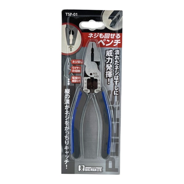 ビッグマン ネジも回せるペンチ 潰れたネジも ワイヤー切断 サビ・特殊・六角・ナットにも対応 万能 便利 TSP01