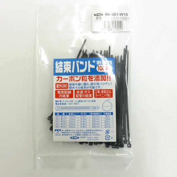 トヨミツ:結束バンド 黒 2.5×100mm 100本入 配線 ケーブル 野外OK 耐候性/601-W10