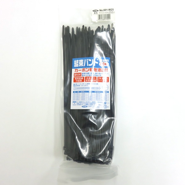 トヨミツ:結束バンド 黒 4.8×250mm 100本入 配線 ケーブル 野外OK 耐候性/601-W25