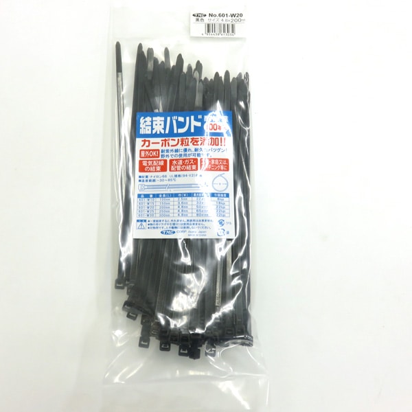 トヨミツ:結束バンド 黒 4.8x200mm 100本入 配線 ケーブル 野外OK 耐候性/601-W20