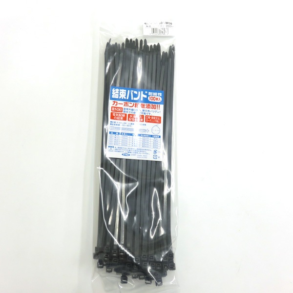 トヨミツ:結束バンド 黒 4.8×300mm 100本入 配線 ケーブル 野外OK 耐候性/601-W30