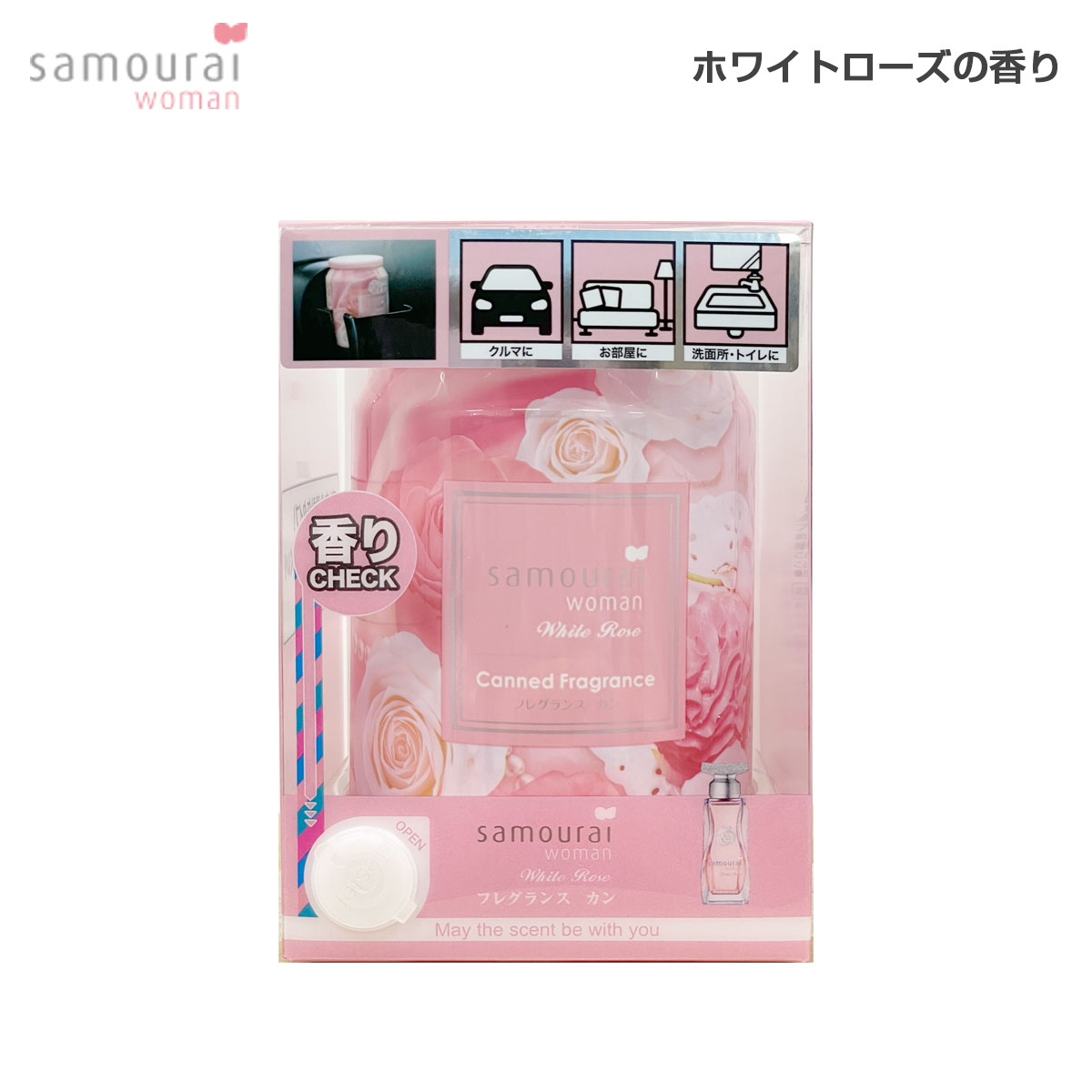 SPRジャパン 芳香剤 サムライウーマン ホワイトローズの香り フレグランスカン ゲル 置き型 缶 200g 消臭 車内 室内 SAMOURAI 23695