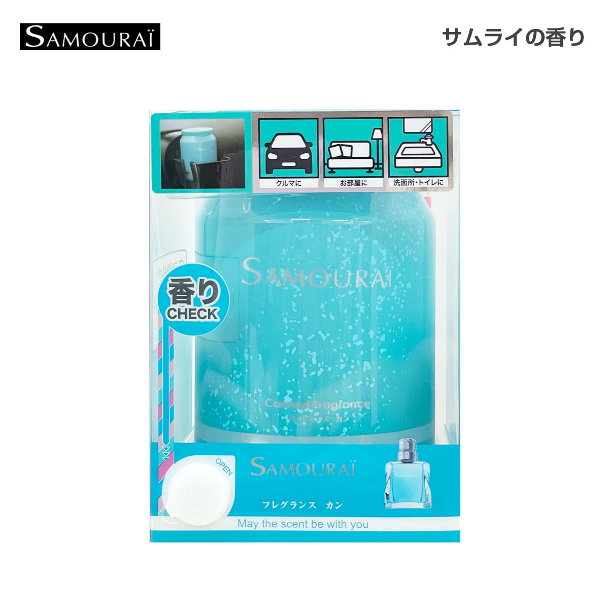 SPRジャパン 芳香剤 サムライ アクアマリン フレグランスカン ゲルタイプ 置き型 缶 200g 消臭 車内 室内 SAMOURAI 23697