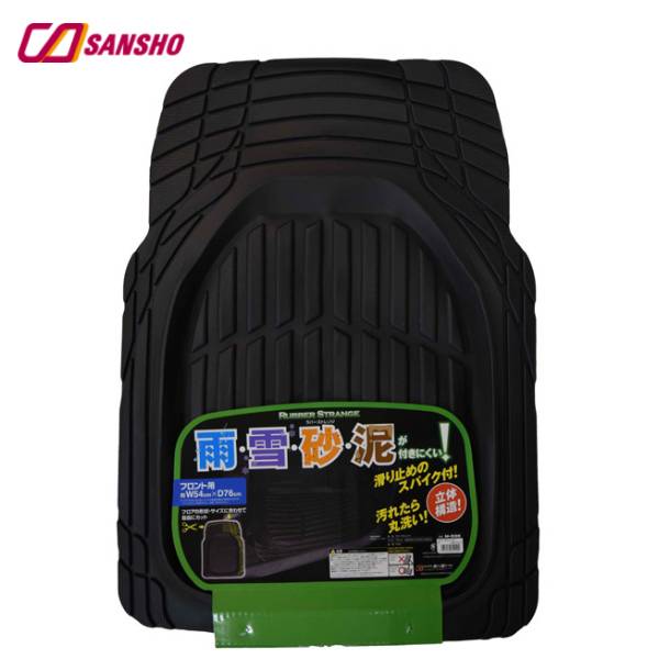 シーエー産商/CA ラバーストレンジマット フロント用 カーマット ブラック W540mm×H760mm 立体構造 丸洗い可能 カットOK M-935