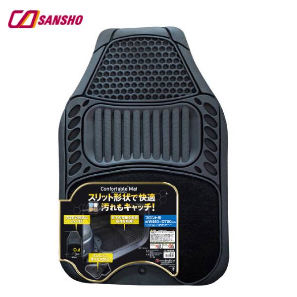シーエー産商/CA コンフォータブル フロント用 フロアマット カーマット ブラック W460mm×H700mm 3Dハニカム形状 スリット形状 M-943