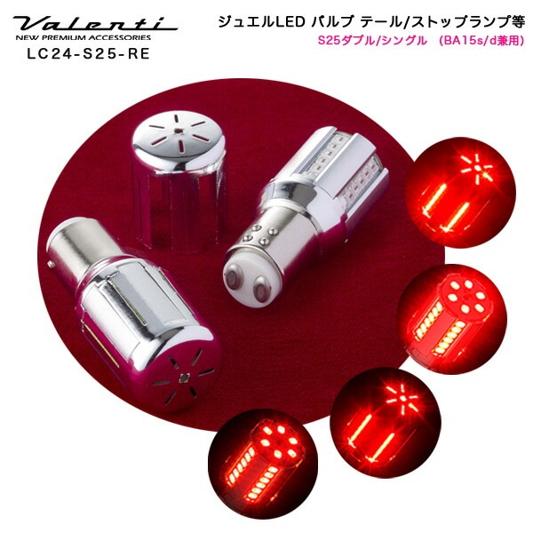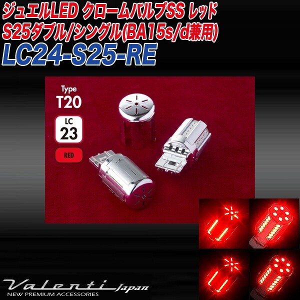 ヴァレンティ:LED クロームバルブ テールランプ ストップランプ S25ダブル/シングル(BA15s/d兼用) レッド DC12V 2個入/LC24-S25-RE